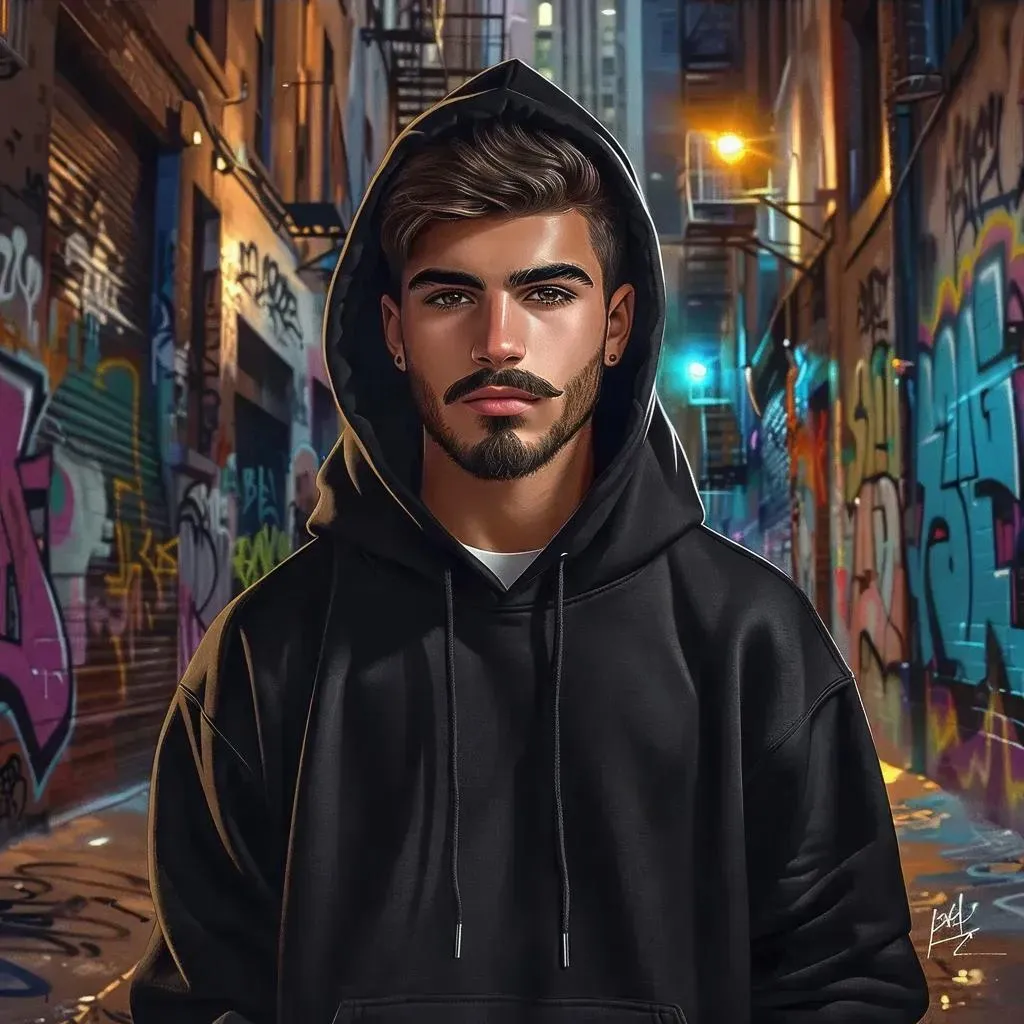 Create lifelike AI-generated portraits of 18-year-old boys in black hoodies with detailed beards and mustaches using vivago.ai. Perfect for character design, storytelling, or profile visuals. Transform prompts into professional-grade images with realistic facial hair and youthful features. Ideal for digital creators seeking authentic, edgy AI-generated characters.
