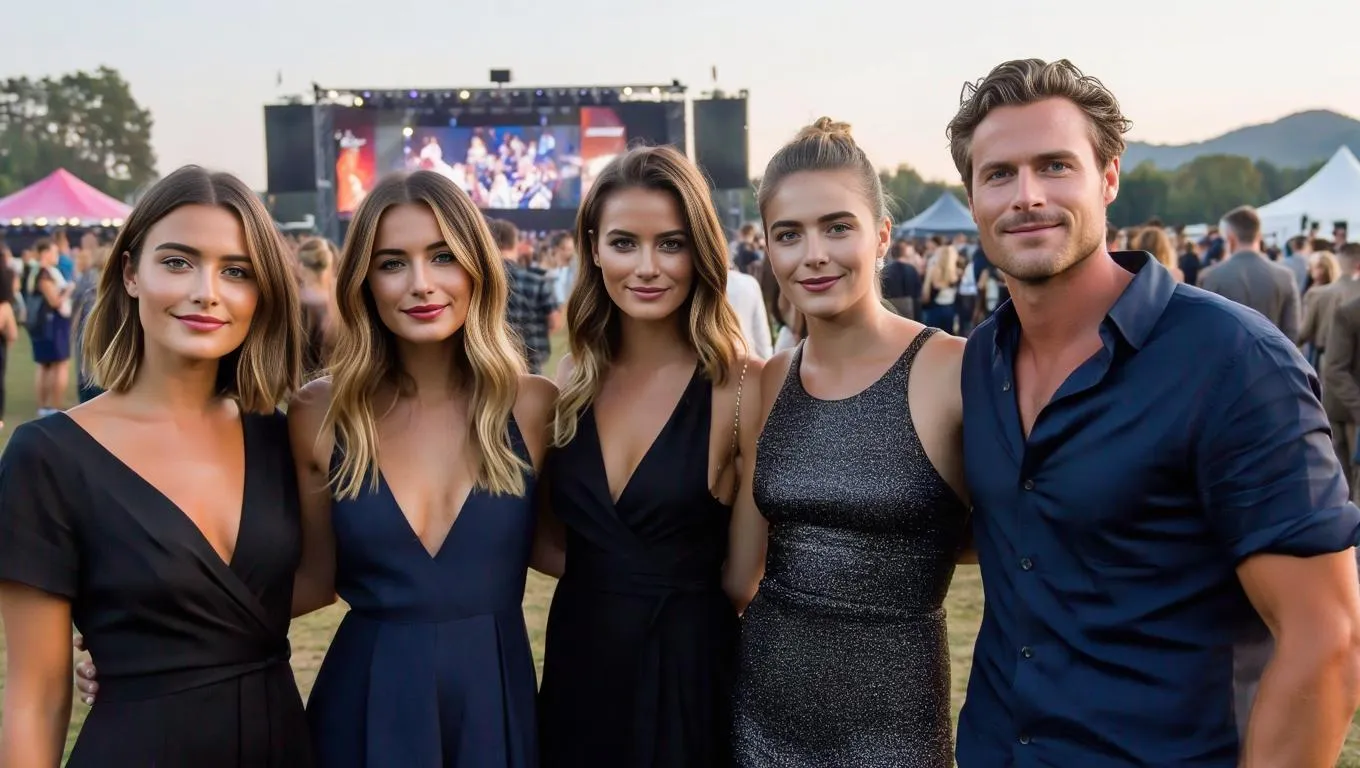 Capture a dynamic group of 2 women and 4 men at a movie festival using Rule of Thirds composition for balanced, professional-grade visuals. Vivago.ai's AI-powered tools transform text prompts into striking images with perfect framing and artistic effects. Elevate your event photography with AI-enhanced precision and creativity.