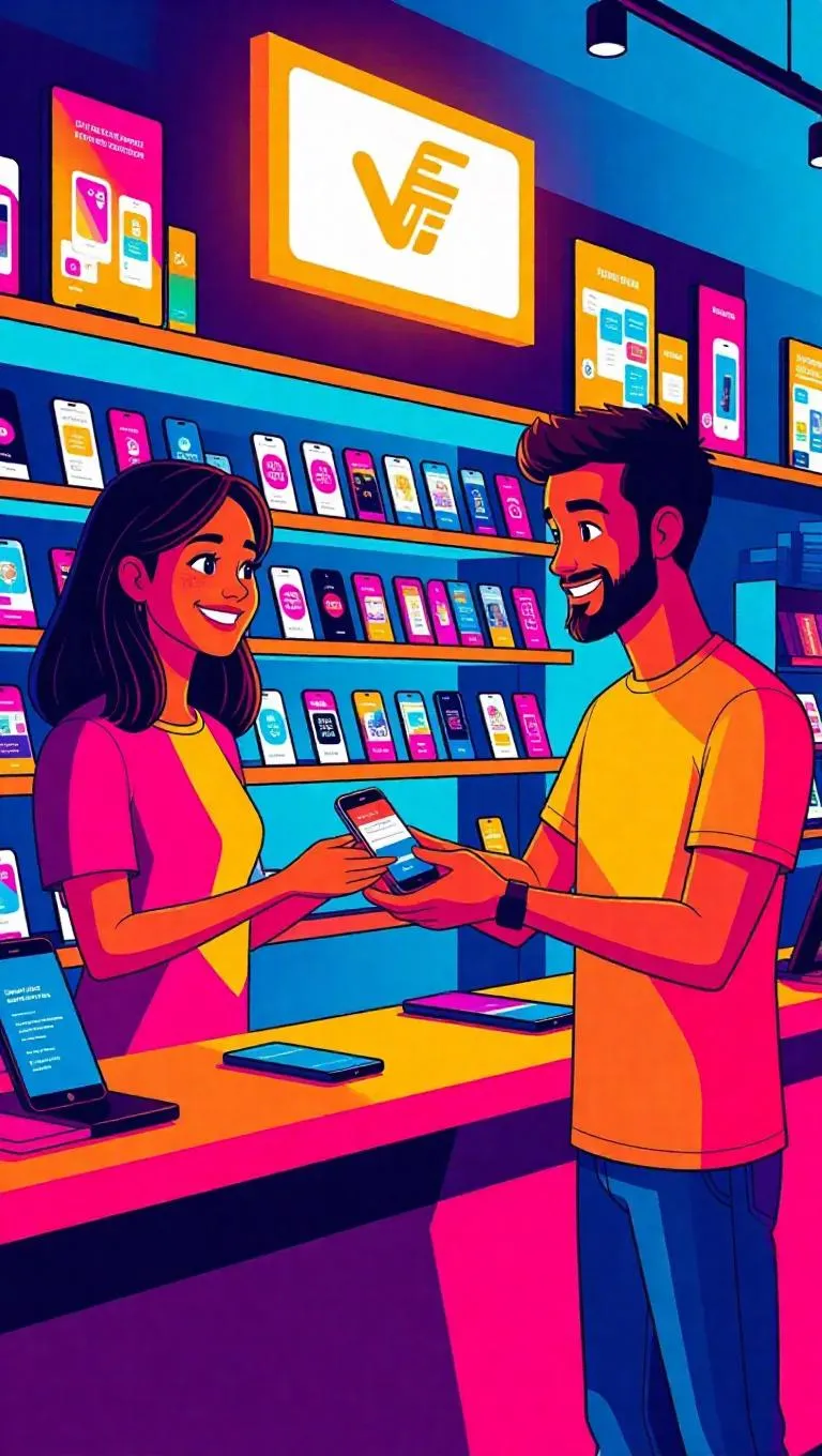 Create dynamic comic book-style AI images of a modern phone store with bold lines and vibrant colors. Generate scenes featuring friendly shopkeepers, satisfied customers, sleek displays, and glowing logos using AI tools. Perfect for illustrating customer satisfaction, tech promotions, or retail storytelling with expressive characters and vivid comic aesthetics.