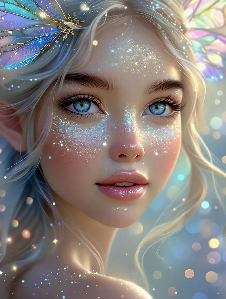 Create an AI-generated mystical fairy with silvery light essence in Moebius-inspired settings. Featuring Elden Ring aesthetics, intricate mystical aura details, ray-traced beams, and 8K sharp focus. Perfect lifelike rendering with multicolored magic particles, smooth blending, and ethereal pastel lighting for professional-grade fantasy visuals.