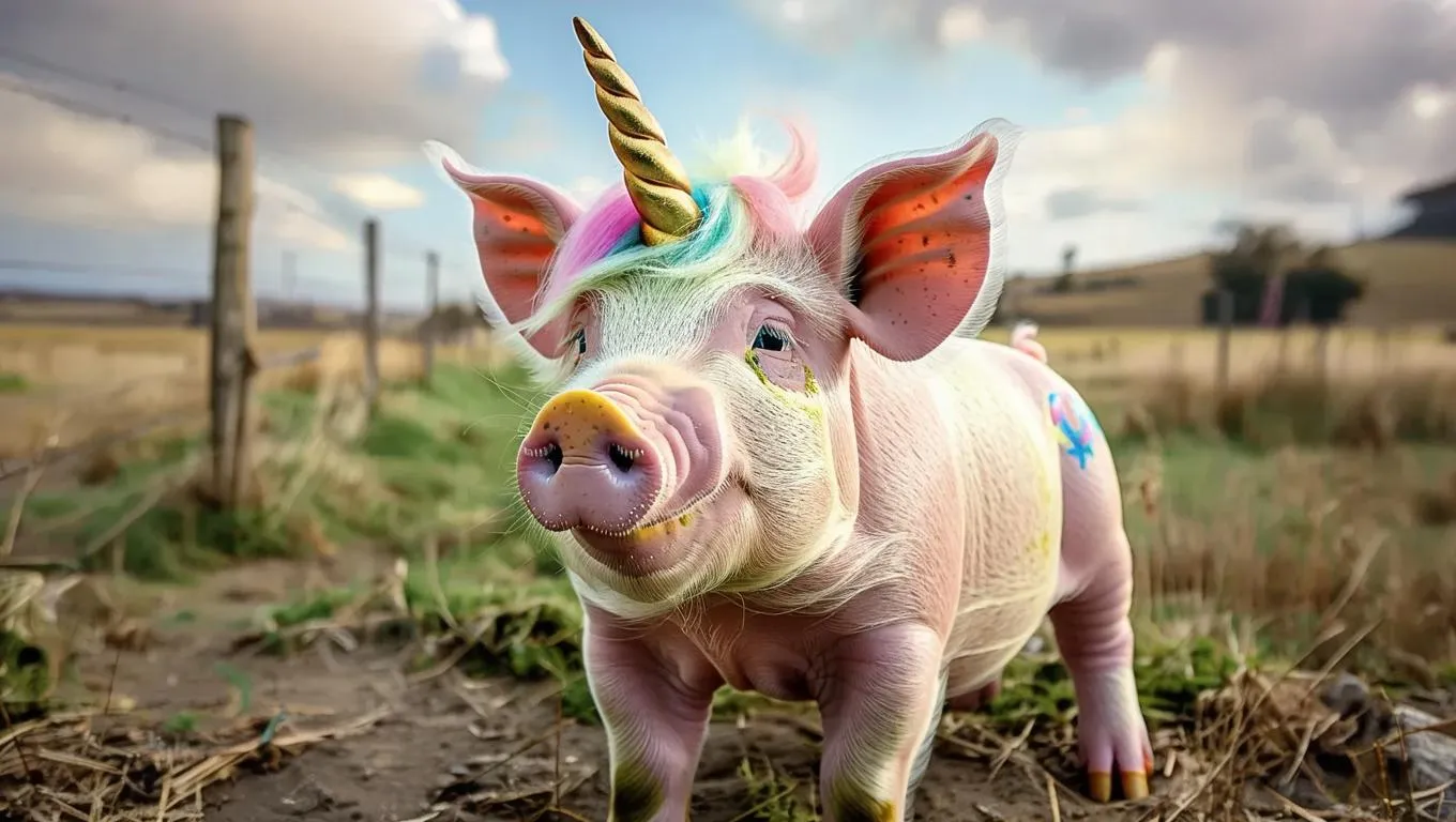 Create whimsical pig-unicorn hybrids with vivago.ai's AI image generator. Blend playful pig features and magical unicorn elements through text prompts or reference images. Generate viral fantasy creatures effortlessly, enhanced by customizable AI effects for professional, enchanting designs. Perfect for unique digital art and imaginative storytelling.