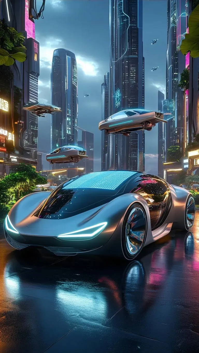 Generate hyper-realistic futuristic electric cars with sleek aerodynamic designs, glossy metallic finishes, and glowing LED accents. Explore AI-powered transparent solar panels, holographic displays, and magnetic levitation in neon-lit cityscapes. Perfect for clean energy visuals, dynamic perspectives, and vibrant, eco-friendly innovation.