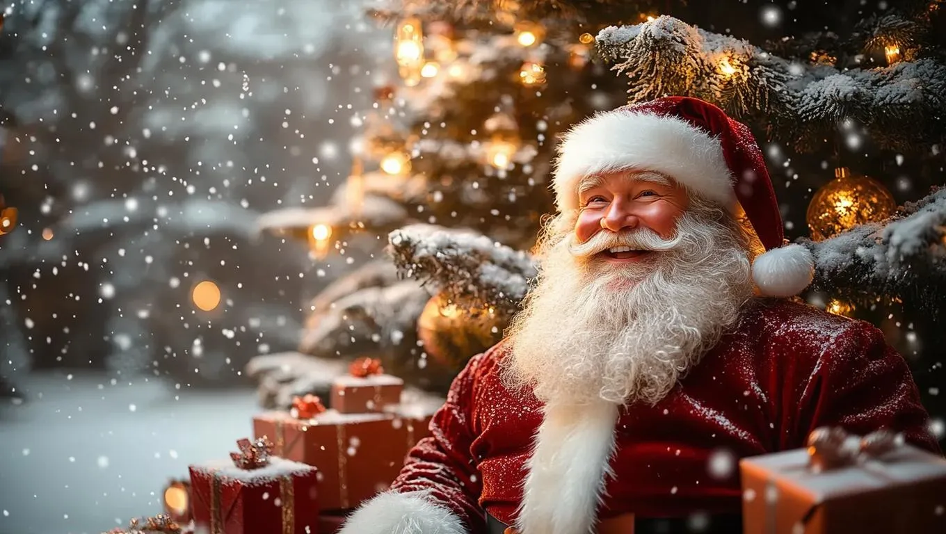 Generate a cozy Christmas scene with AI: Santa Claus, gift boxes, and a towering tree in heavy snowfall. Craft enchanting holiday visuals effortlessly using vivago.ai's AI image generator. Perfect for festive cards, social posts, and seasonal branding. Transform text prompts into magical winter wonderlands with professional-grade editing tools.
