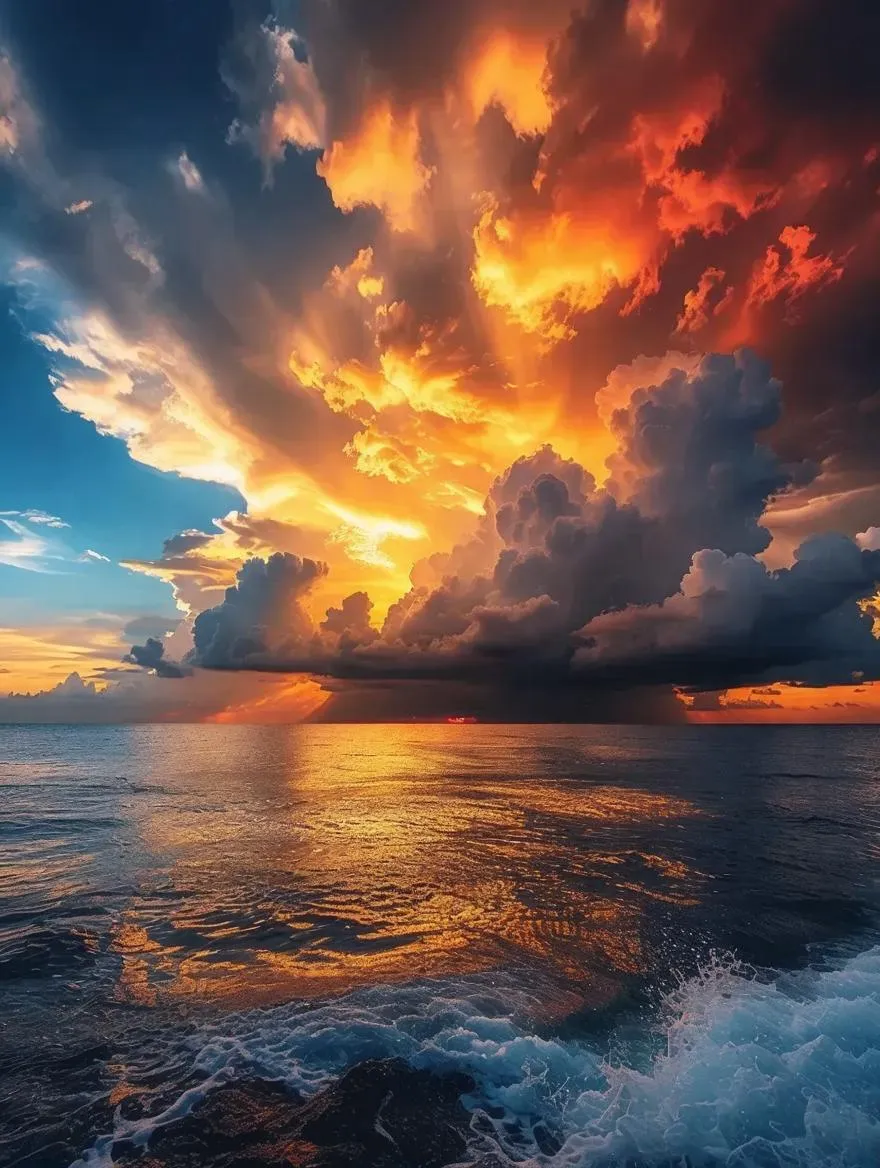 Create stunning AI-generated scenic views with VivaGo.ai. Transform prompts into 4K DSLR-quality images: serene seas beneath vibrant cloudy skies in yellow, orange, red, and blue tones. Perfect 3:2 sky-to-sea ratio, 85mm lens precision. Ideal for professional-grade landscapes, blending AI effects with natural beauty. Elevate your visuals effortlessly.