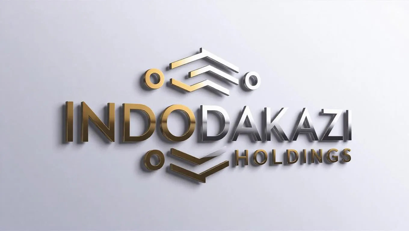 Craft a sleek, modern corporate logo for Indodakazi Holdings with gold, bronze, and silver tones. Features sophisticated typography and dynamic shapes, embodying innovation, versatility, and strength. AI-powered design ensures a vibrant, multi-tasking brand identity. Elevate professionalism with metallic elegance and cutting-edge aesthetics.