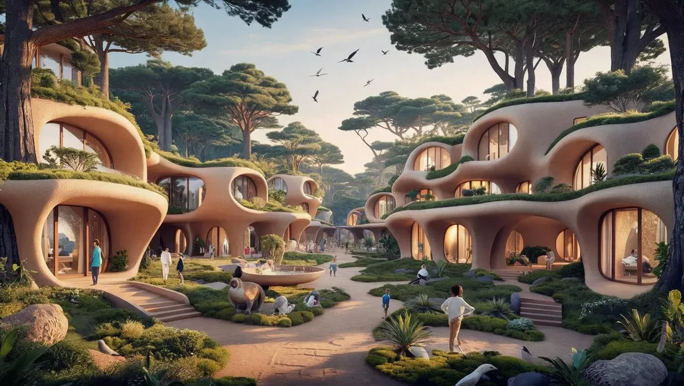 Discover 300 AI-generated eco-homes facing an avian tech hub, nestled in an enchanted forest with mythical creatures. Gaudí-inspired organic architecture merges urban living with surreal nature. Explore AI-powered imagery of sustainable communities blending biophilic design, fantasy wildlife, and cutting-edge bird research. Create visionary eco-spaces effortlessly.