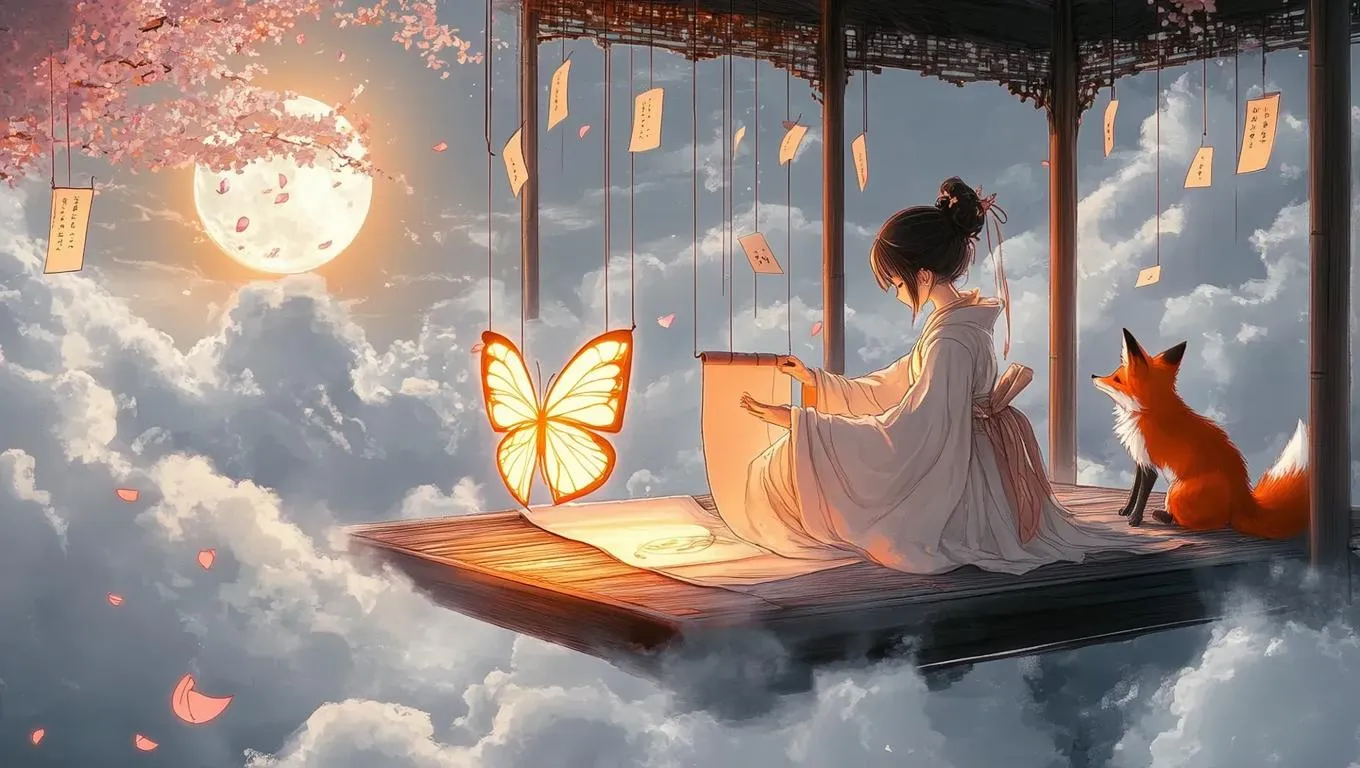 Generate cinematic AI anime art with Vivago.ai's watercolor effects. Craft ethereal scenes of floating pavilions, glowing scrolls, and ink-stained sakura in soft grayscale. Elevate storytelling with luminous butterflies, sacred atmospheres, and warm watercolor light. Perfect for professional-grade, emotionally resonant anime-inspired visuals and bittersweet narratives.