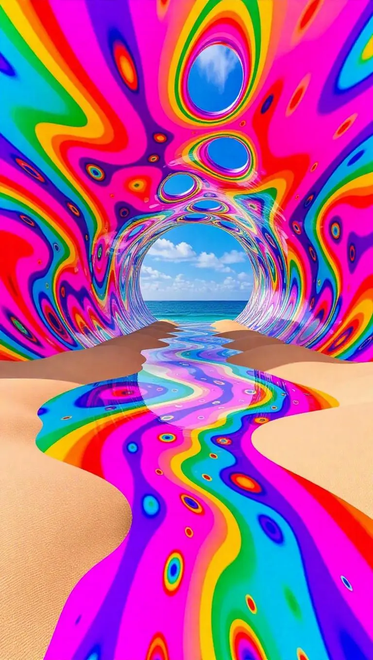 Generate surreal AI art with entoptic phenomena, psychedelic hues, liquid cartoon graffiti walls, and peeling abstract skies. Explore liquid light art, outer space rivers, and beaches filled with sand from shattered hourglasses. Craft avant-garde AI-generated visuals blending nature, surrealism, and vivid colors. Ideal for psychedelic, abstract, and liquid-effect digital art projects. Powered by VivaGo.ai's creative AI tools.