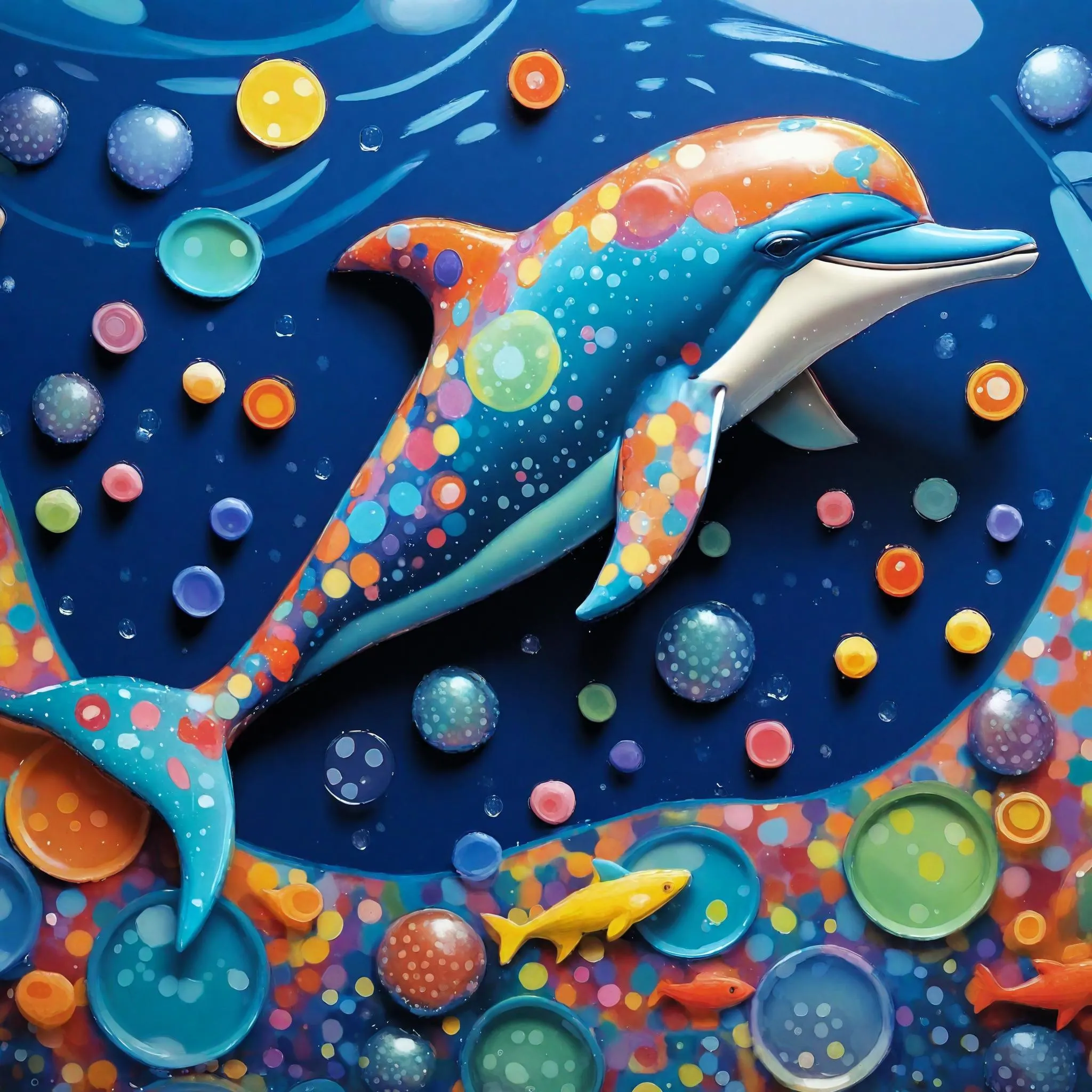 Create a vibrant AI-generated dolphin painting with vivago.ai. Transform text prompts into whimsical scenes featuring polka-dotted dolphins, geometric patterns, and colorful fish in a dynamic underwater world. Perfect for digital artists seeking playful, professional-grade AI image generation tools to bring imaginative aquatic concepts to life.