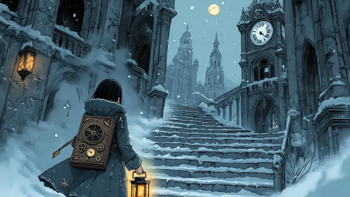 Explore AI-generated anime artistry with this cinematic watercolor scene of a gothic clocktower ascent. Witness a determined heroine reclaiming forgotten time amid frost-laden bells, moonlit grays, and delicate ink lines. Blending ethereal winter ambiance, steampunk motifs, and golden warmth, this visual narrative merges AI precision with watercolor softness for hauntingly beautiful storytelling. #Anime #Cinematic #Watercolor