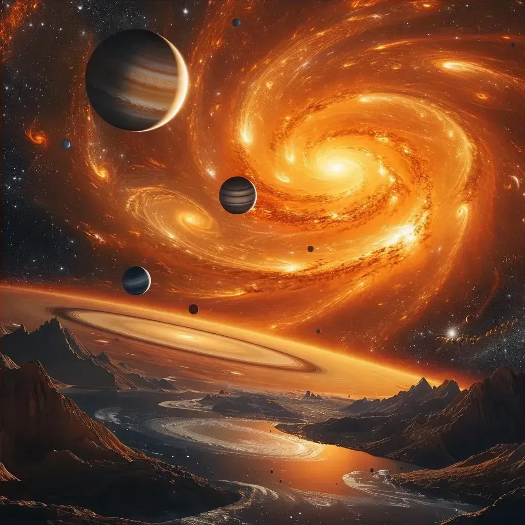 Craft mesmerizing orange galaxy space landscapes with Vivago.ai's AI generator. Transform text prompts into vivid cosmic art featuring glowing nebulae, star clusters, and alien terrains. Perfect for sci-fi visuals, digital art projects, and celestial-themed content creation. Explore AI-powered space scene generation with professional-grade results.