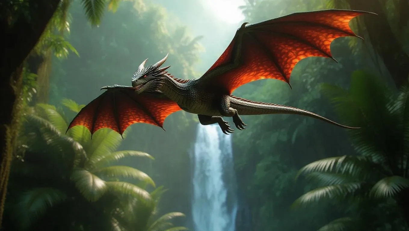 Create AI-generated dragons soaring through jungle skies with dynamic motion effects. Transform text prompts into vivid animations using Vivago.ai's AI video tools. Craft professional-grade, imaginative visuals with curated effects and editing features for stunning aerial jungle scenes.