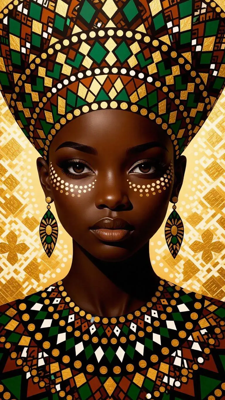 Create African art paintings with traditional patterns in brown, green, and gold colors using Vivago.ai. Transform text into professionally designed, culturally rich visuals with our AI image generator. Easy text-to-visual transformation for unique digital artistry.