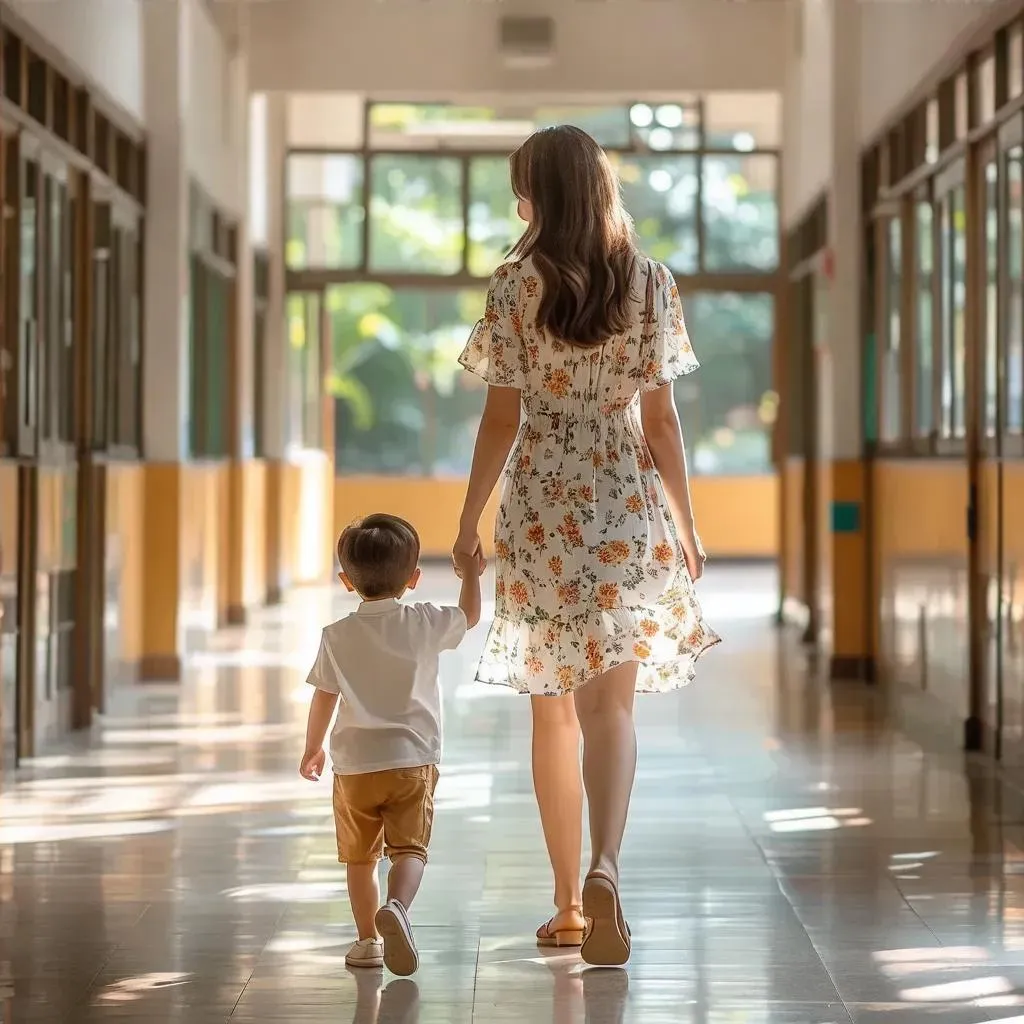 Transform text into striking visuals with VivaGo.ai's AI image generator. Create vivid scenes of motherhood elegance – a radiant young mom in floral dress guides her son through bustling school halls, ambient lighting accentuating her poised charm. Perfect for crafting dominant, heartwarming characters in crowd settings with professional-grade AI artistry.