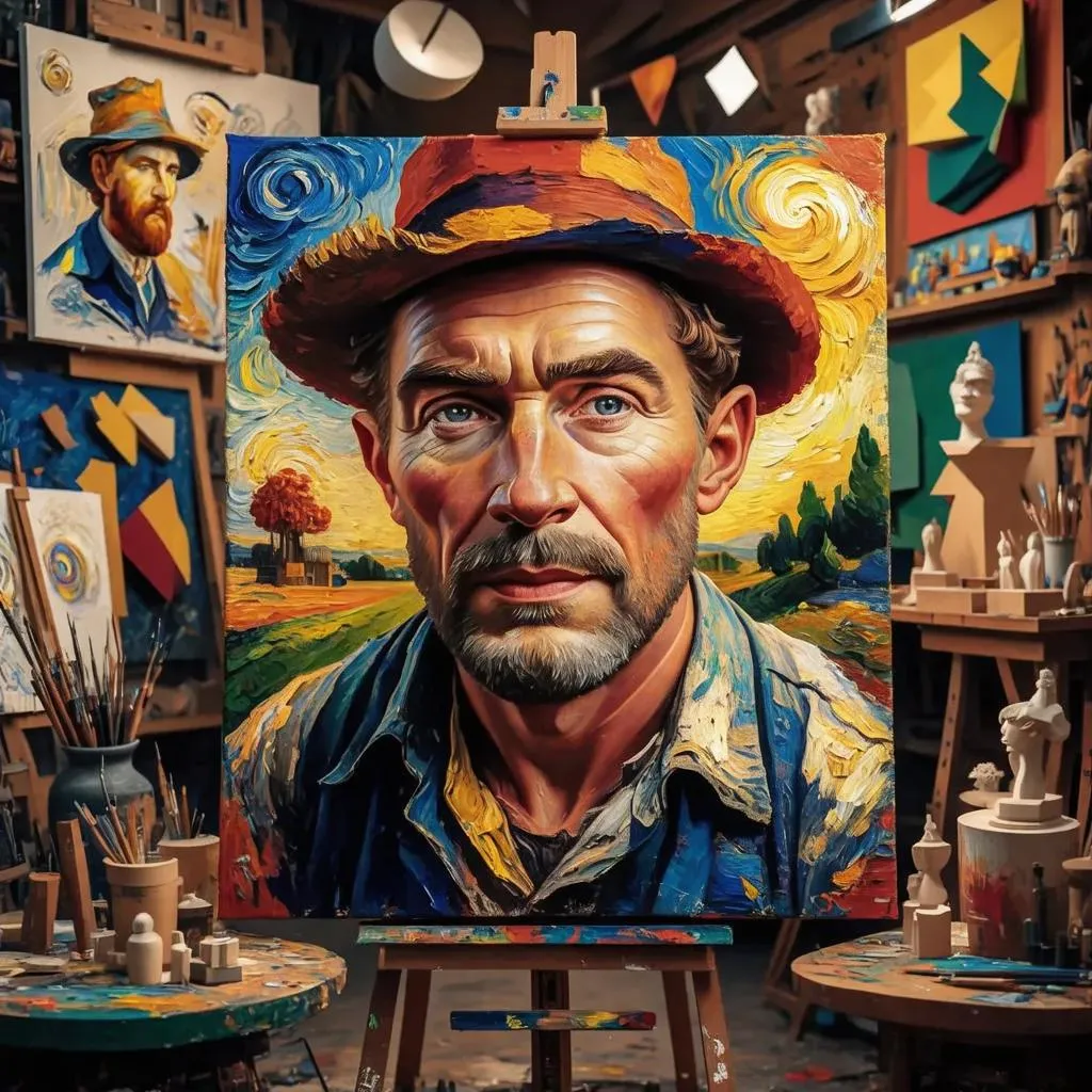 Create AI-generated Van Gogh-inspired portrait art with bold strokes & earthy tones. Depict rugged farmers in dynamic compositions, blending fantasy elements, textured sketches & rustic details. Explore raw expressiveness, warm palettes & authentic studio scenes for professional-grade digital artwork.