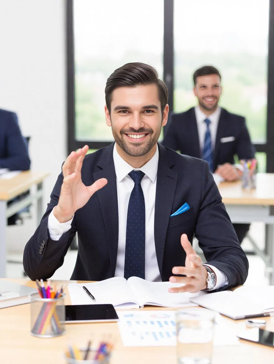 Create a charismatic businessman image with Vivago.ai. Use AI to generate charming, professional portraits visualizing stylish male executives and persuasive leaders. Ideal for presentations, marketing, or character design with premium AI visualization.