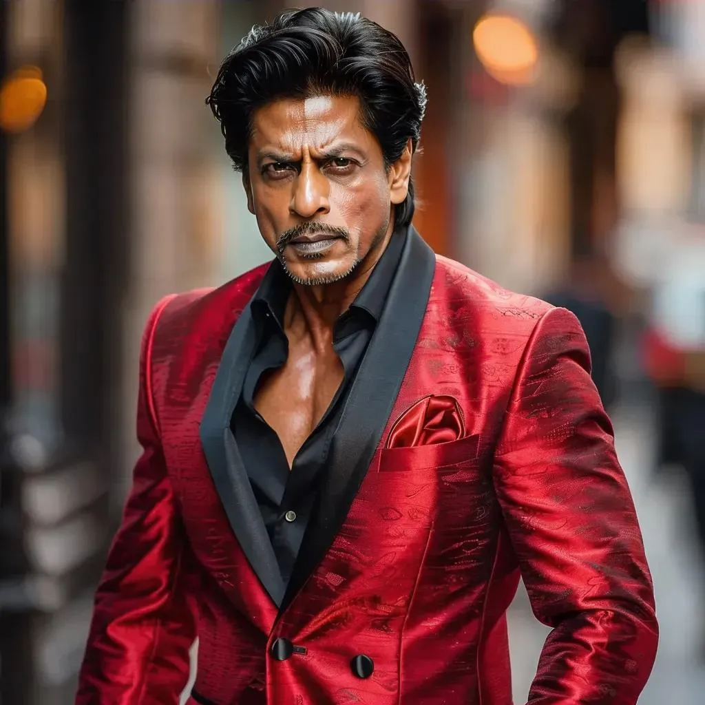 Generate stunning AI images of Shah Rukh Khan in a vibrant red blazer with vivago.ai. Transform text prompts into professional-grade visuals, blending Bollywood-inspired aesthetics with AI creativity. Elevate your projects using advanced AI effects and editing tools for crisp, high-resolution results. Perfect for fans, designers, and content creators seeking iconic celebrity-inspired digital art.