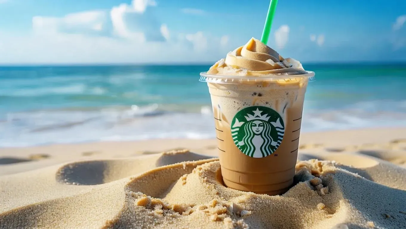 Create a refreshing AI-generated image of an iced coffee cup surrounded by pristine white sands. Perfect for summer-themed visuals, this prompt blends cool beverages with desert serenity. Ideal for social media, ads, or travel content. Transform text into striking visuals effortlessly using VivaGo.ai's advanced AI tools for professional-grade results.