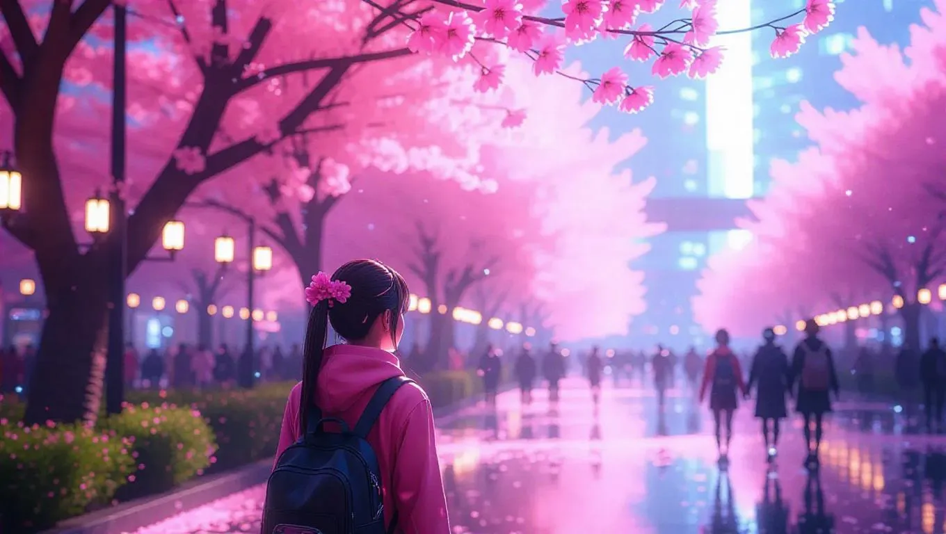 Create vibrant AI-generated anime scenes with cherry blossoms in a futuristic cityscape. Featuring cinematic lighting, cheerful characters, and 8k hyper-quality visuals. Perfect for dynamic low-angle shots, morning backlight, and soft illumination. Transform prompts into stunning near-future narratives using Blender Renderer. Elevate your creative projects with Vivago.ai's advanced AI tools.