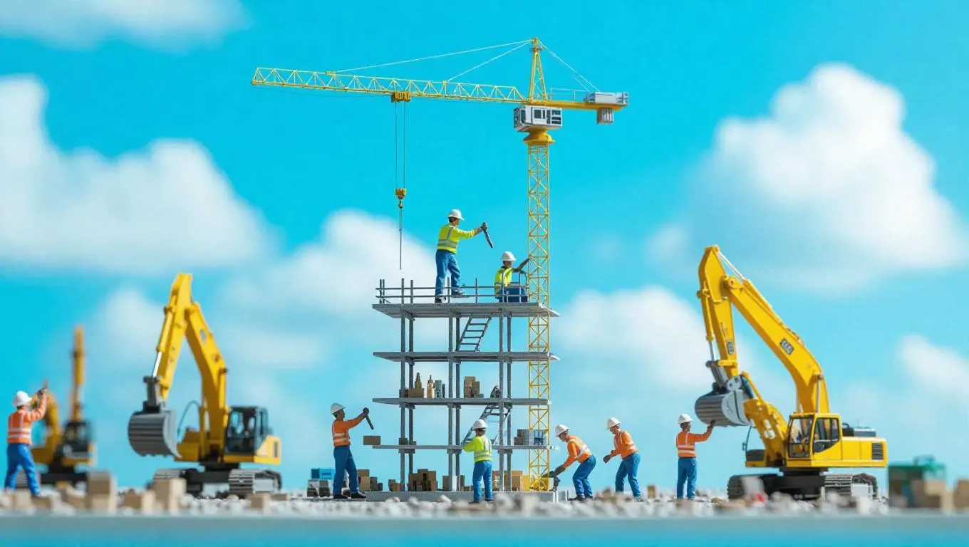 Transform text into whimsical AI-generated visuals with VivaGo. Craft surreal scenes of miniature construction workers building colossal structures using oversized tools under vivid daylight. Explore AI-powered creativity for professional-grade, imaginative artwork and stunning visual effects tailored to your prompts.