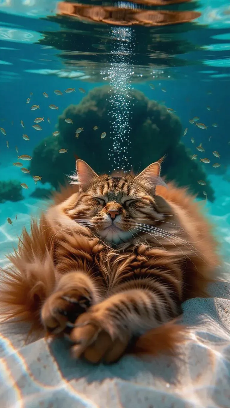 Transform your imagination into AI-generated art with this surreal underwater tranquility prompt. Visualize a colossal slumbering feline island, its fur teeming with vibrant micro-marine life, blending fantasy and aquatic serenity. Perfect for AI image generation tools to create dreamlike fusion of nature and whimsy, ideal for surreal art enthusiasts seeking hyper-realistic, calm aquatic landscapes through creative visual storytelling.