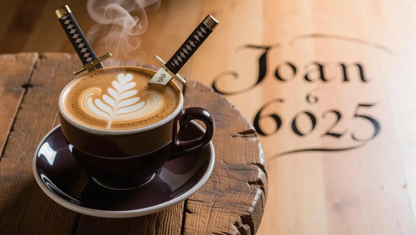 Create AI-generated cappuccino art with dynamic samurai swords and engraved "Joan 6 2025" text. Transform coffee visuals into surreal, warrior-themed masterpieces using vivago.ai's AI effects for bold, intricate designs. Perfect for unique digital art blending Japanese motifs and personalized details.