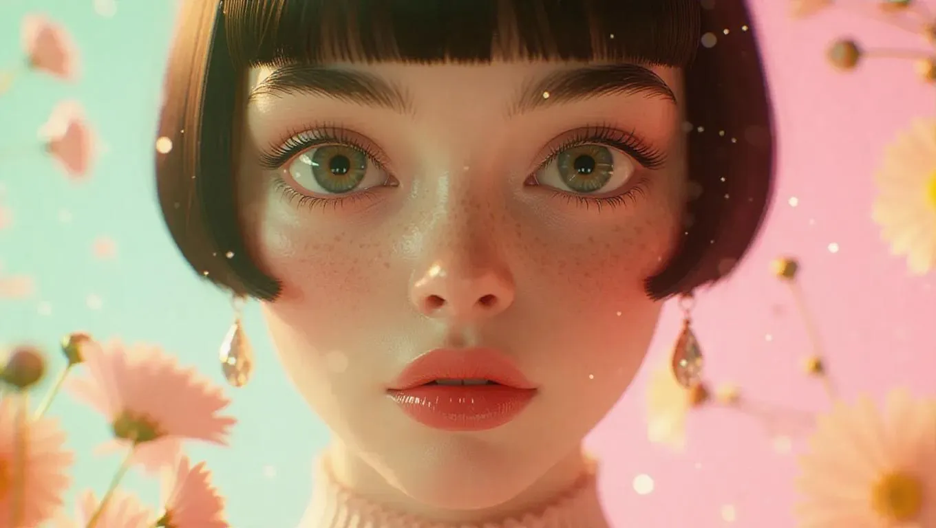 Create hyper-realistic AI images of enigmatic characters with striking square-shaped eyes, set against soft pastel backgrounds. Capture cinematic elegance using a 50mm lens for precision, emphasizing meticulous textures and lighting. Ideal for surreal, whimsical visuals blending high-end magazine aesthetics with AI-powered clarity, perfect for captivating digital art and professional creative projects.