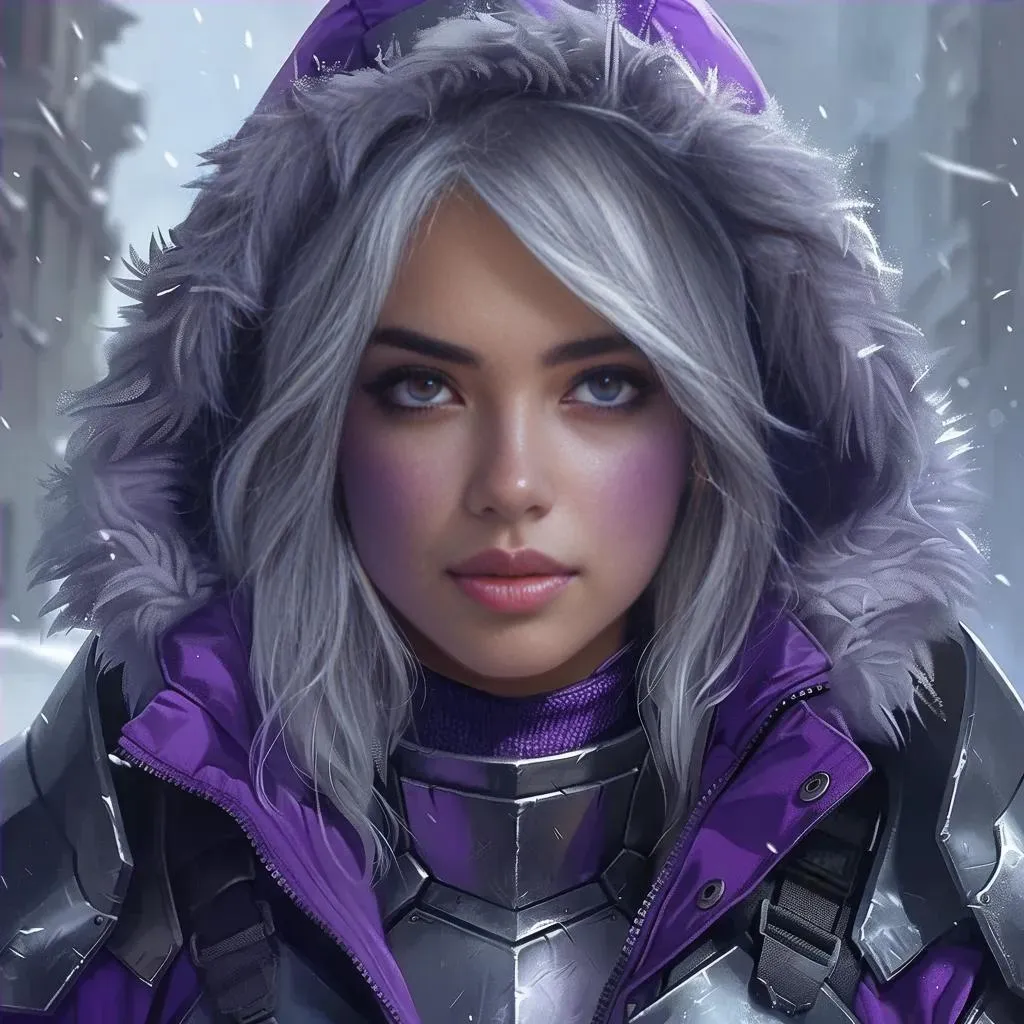 Create an AI-generated girl with striking purple skin, frost armor accents, and windbreaker attire using VivaGo.ai. Customize grey hair, pale undertones, and vivid purple eyes for ethereal visuals. Add dynamic fluff details and excited expressions through AI effects, perfect for fantasy art or concept design. Explore limitless creative transformations with professional-grade AI image generation tools.