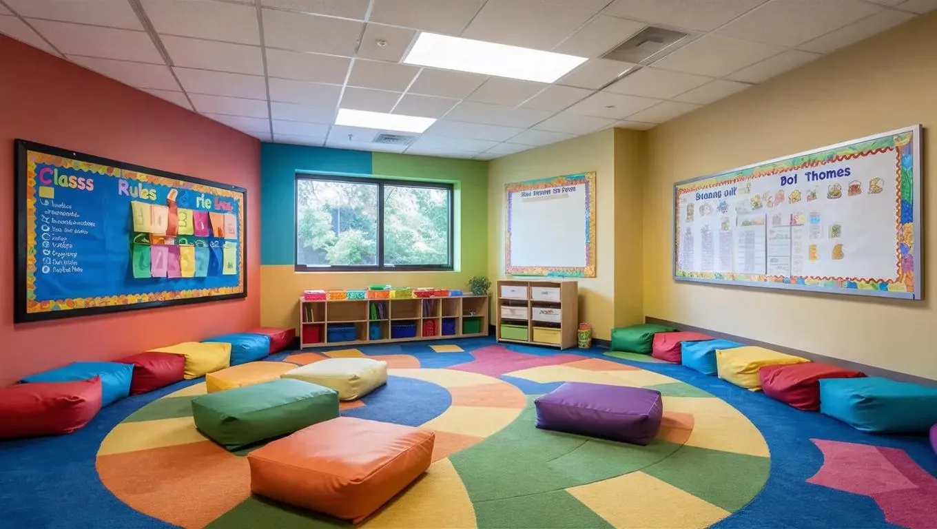 Transform your kindergarten classroom with AI-generated designs! Create a spacious, cozy learning space featuring cushioned floors, plush cushions, and natural-lit windows. Customize smooth walls with educational panels, class rules, and vibrant visuals. Perfect for interactive assembly areas. Explore vivago.ai's AI tools to craft inspiring, child-friendly environments effortlessly.