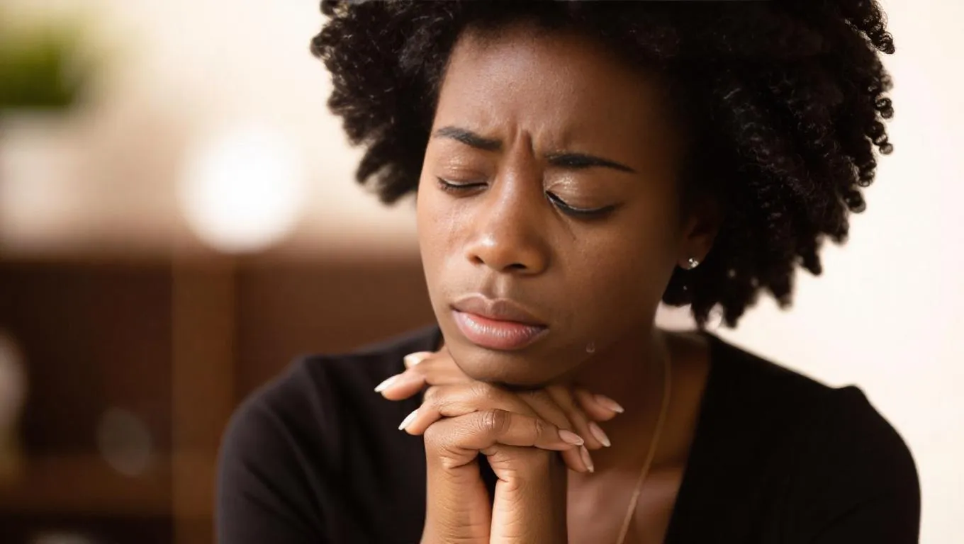Create captivating AI-generated visuals of a black woman with natural hair, golden tears streaming in despair. Transform text prompts into striking imagery using Vivago.ai's advanced AI art tools for emotionally powerful, professional-grade creative expressions.