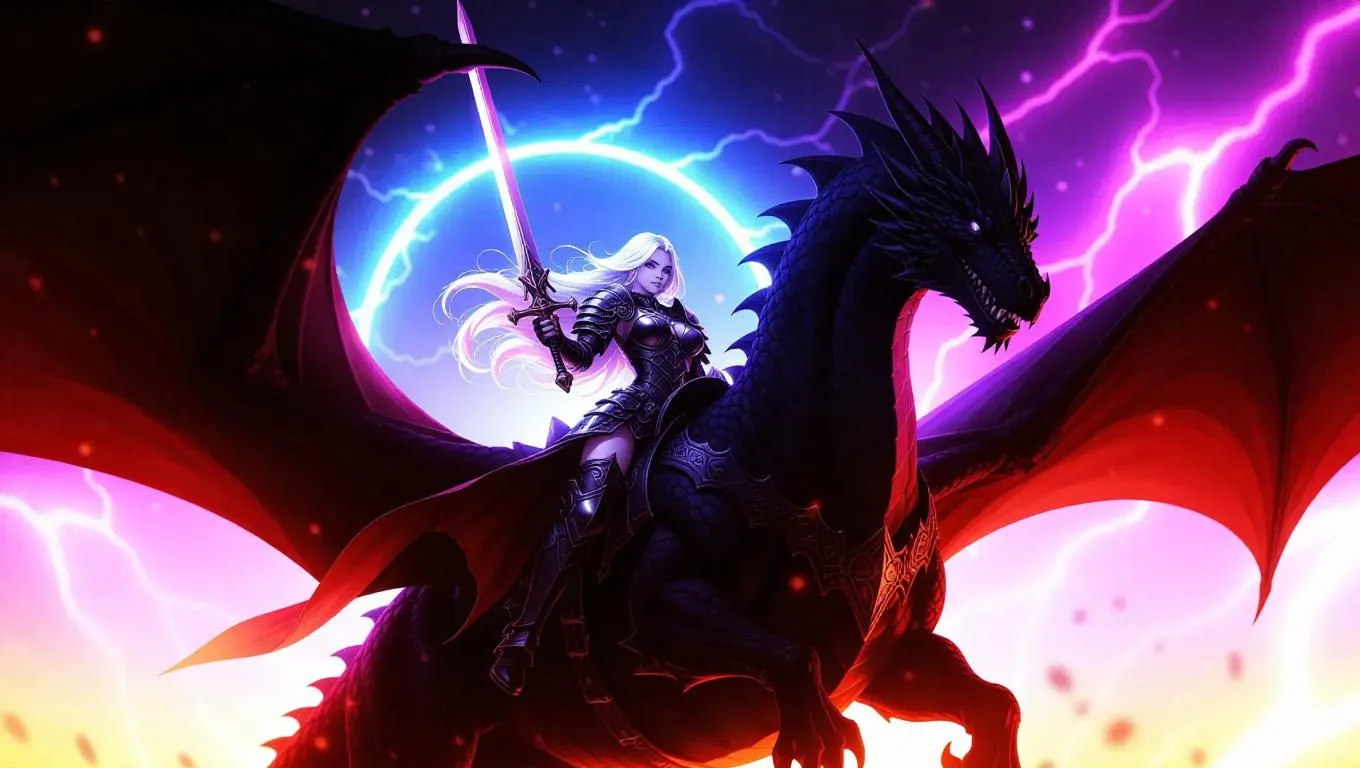 Transform text into vivid AI art with vivago.ai’s creative tools. Generate epic visuals of FluxEpicDragon, a massive black dragon with a saddle-mounted female barbarian warrior. Depict her long white hair, warrior’s knot, and huge sword as they soar through a mystical portal into a starry dark sky with mist, lightning, and magical ambiance. Professional-grade AI effects for stunning results.