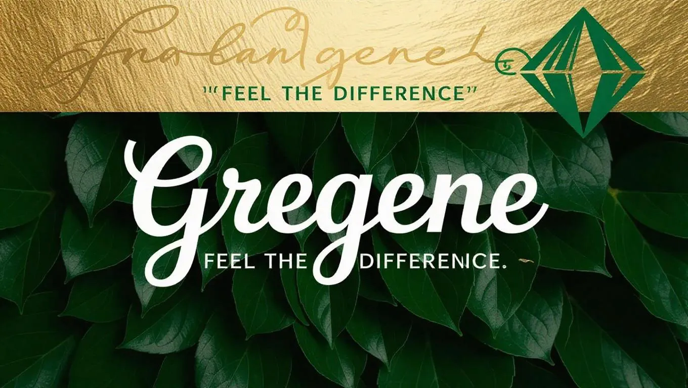GRENE brand combines eco-luxury with a signature green diamond logo and "Feel the Difference" slogan. Featuring a blue backdrop, gold accents, and elegant cursive typography, it offers premium skincare, haircare, and body products. Discover sustainable beauty innovations inspired by Dove's evolution, crafted for modern consumers seeking ethical, high-quality personal care solutions. Redefine your routine with GRENE's distinctive, planet-conscious branding.