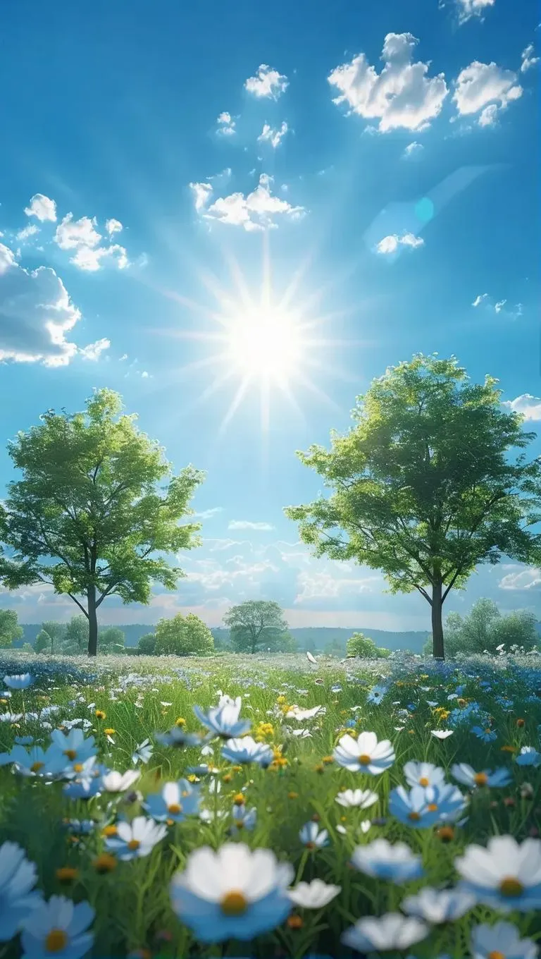 Generate stunning 4K realistic images of a serene morning scene with vibrant blue skies, golden sunlight, blooming flowers, and lush greenery using Vivago.ai's AI image tools. Perfect for nature-inspired visuals, high-resolution backgrounds, and lifelike digital art. Transform text prompts into professional-grade landscapes with vivid details and photorealistic quality effortlessly.