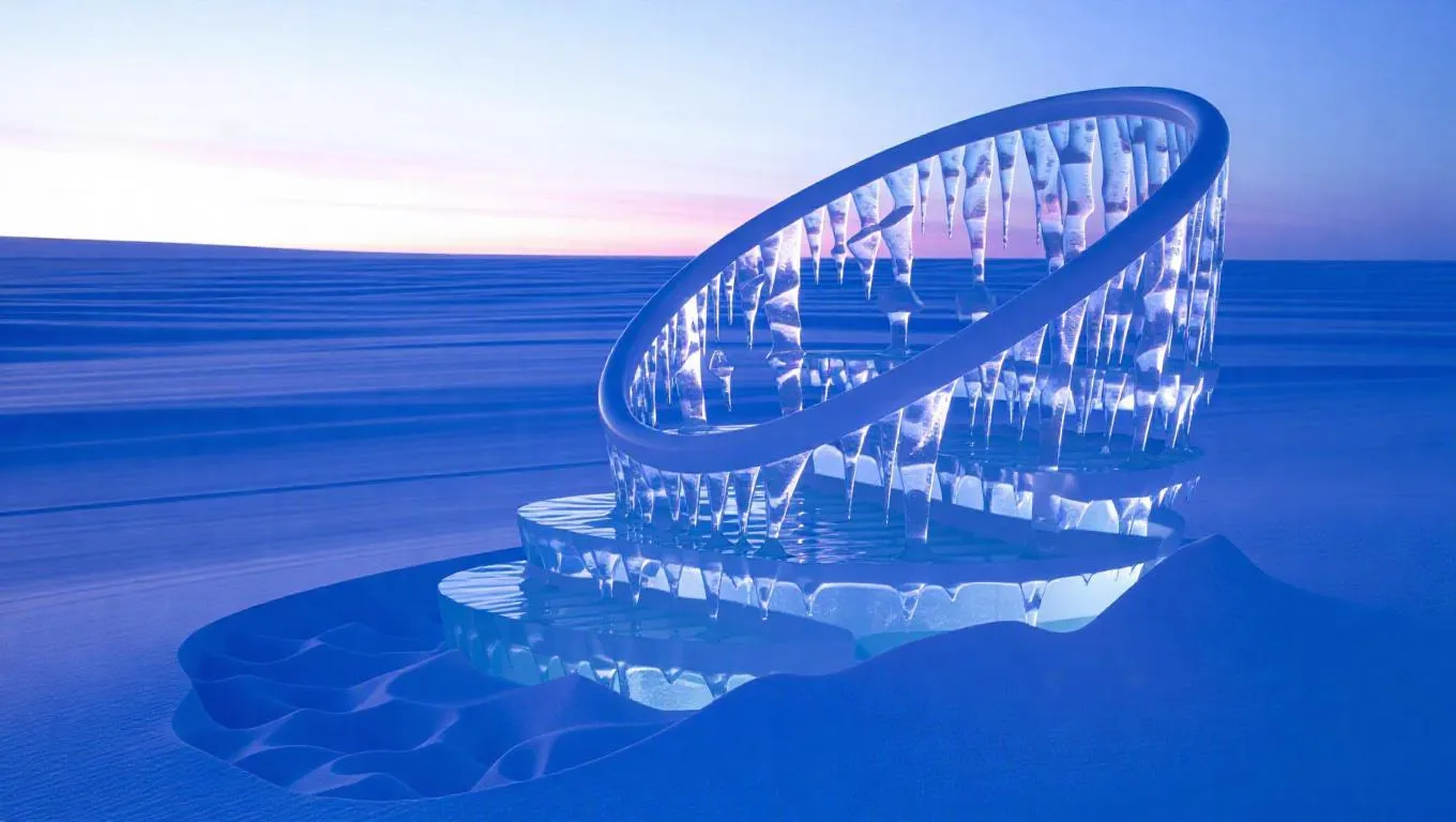 A glacial helix staircase rotates while crystallizing new frost-veined steps, each tread blooming fleeting ice designs that shift with temperature. The ethereal armchair exhales aurora particles, its cold glow casting ancient glacial tales across the tundra. Every blizzard snowflake carries miniature ice fortresses, while background winds approach in perpetual slow motion yet never arrive.