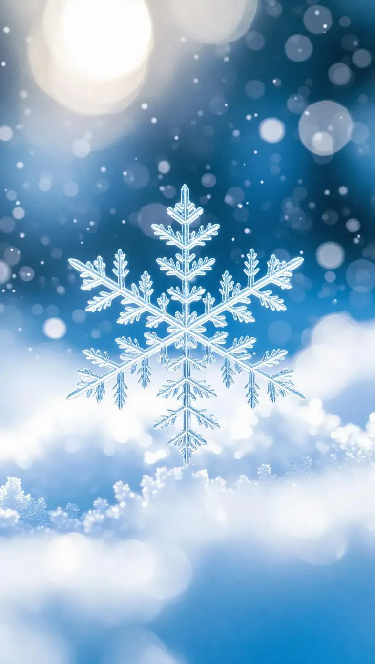 A delicate snowflake close-up, formed entirely from intricate crystal patterns, caught in a snowstorm, illuminated by soft, ethereal light, with a frosty, shimmering glow, capturing the essence of winter's beauty