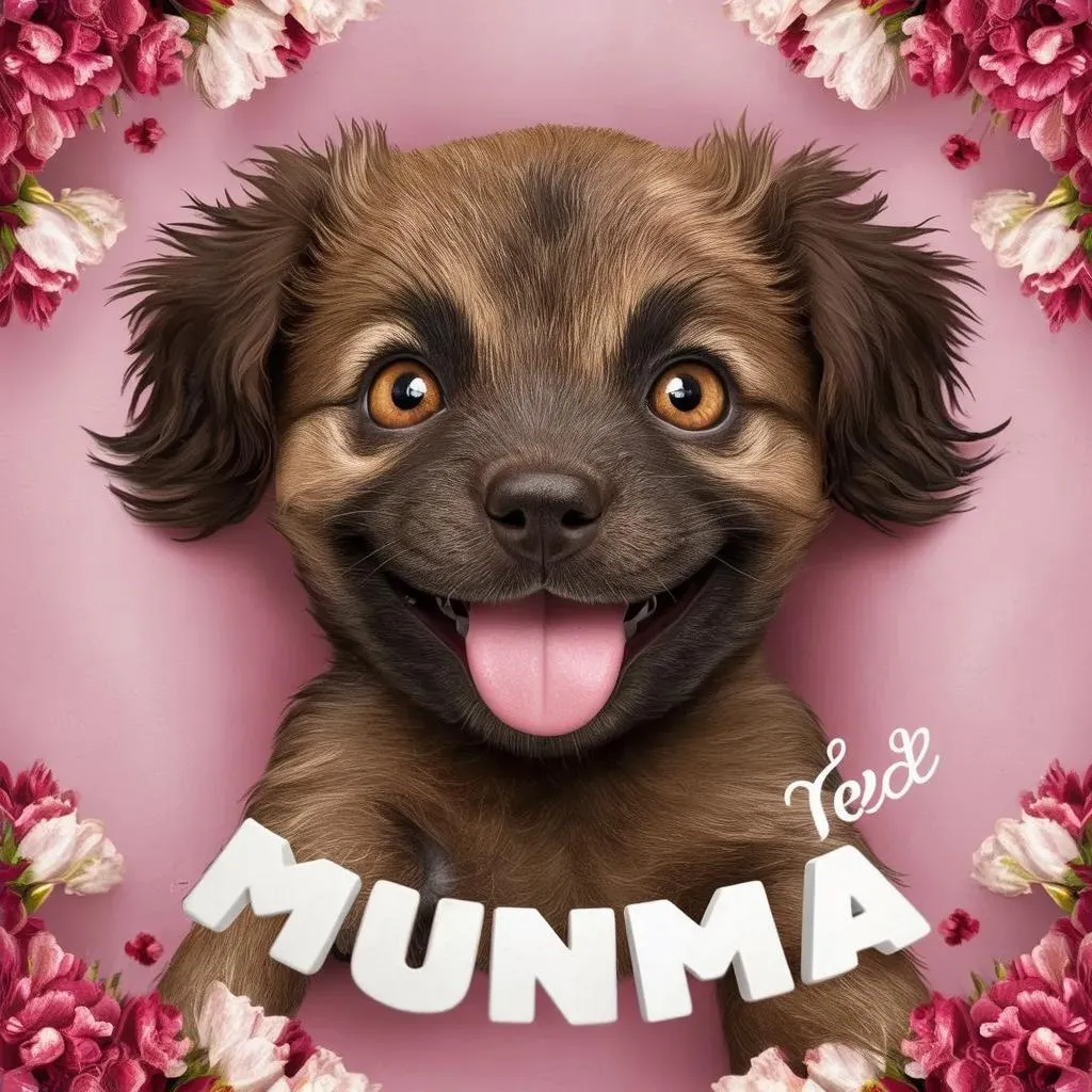 Discover AI-generated images of a charming dark brown poodle puppy in whimsical cartoon-realistic style with furry texture. Featuring vibrant floral backdrops, detailed curly fur, and playful accessories like a dotted silk scarf with butterfly brooch. Capture dynamic poses and a joyful smile. Explore creative AI effects for professional-grade, hyper-realistic pet portraits at VivaGo.ai.