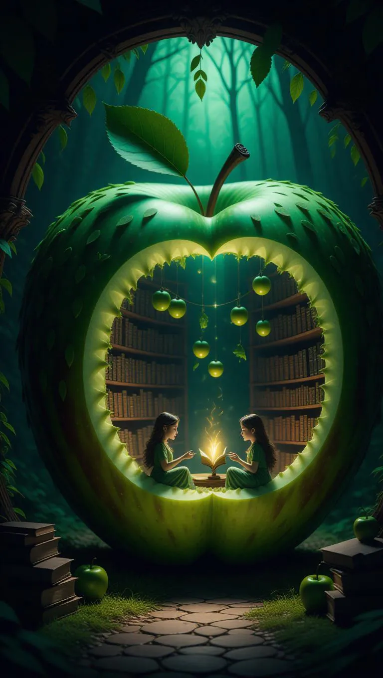 A goblin tenderly caresses the cat's face, in a moonlit winter forest. A delicate snow fairy with translucent wings and shimmering silver hair hovers, her bare feet above fresh powder. Beside her, a sleek black cat with glowing blue eyes curls around an ancient frost-covered oak tree. Soft snowflakes swirl, catching the ethereal glow of bioluminescent ice crystals. Quiet magic radiates, with misty breath visible, and faint auroras dance through pine needles. Cinematic wide shot, shallow depth of field, hyper-detailed fur textures, fairy's iridescent skin, soft bokeh from floating ice, cool indigo and pearl tones, warm lantern light through distant trees.