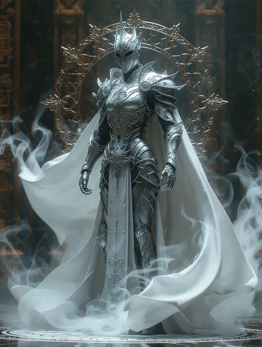 Generate timeless AI visuals with the Eternity art style. Craft an Alabaster Lord figure using alabaster-gray, dark-gray, and light-gray hues. Elevate your creative projects with professional-grade AI image generation and effects on vivago.ai.