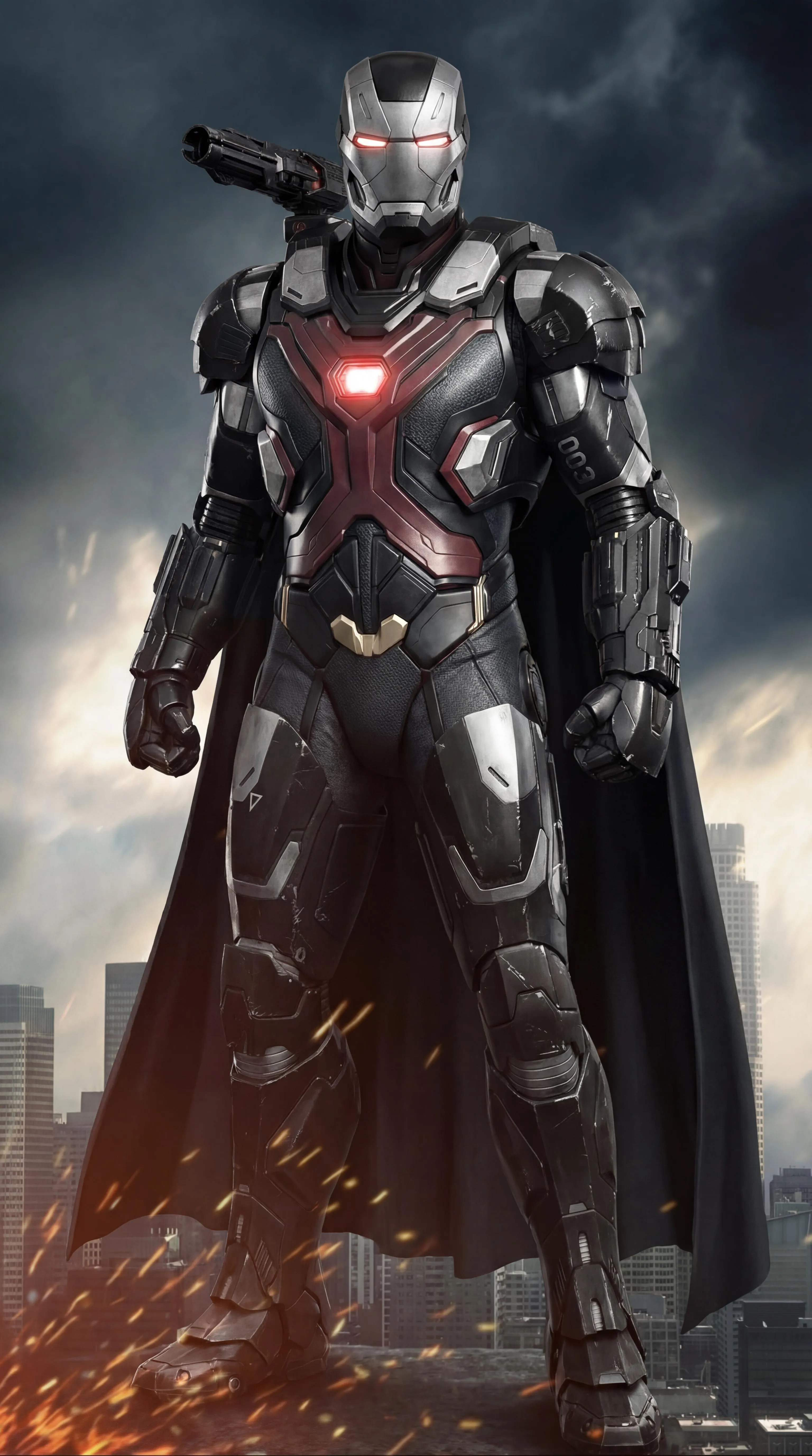 Create AI-generated images of War Manhunter - a fusion of Martian Manhunter and War Machine. Marvel DC crossover concept featuring combined armor with iconic red X chest plate over the Arc Reactor, integrated boots, retained cape, and full-face helmet. Generate this epic superhero hybrid with AI image tools.