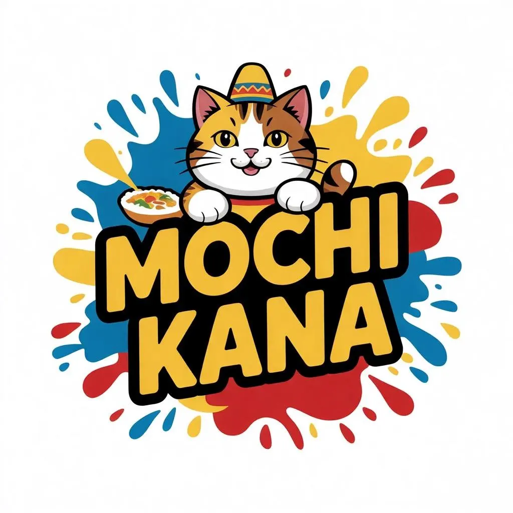 Create a vibrant AI-generated "Mochi Kana" logo blending Japanese and Mexican styles. Featuring a playful Maneki Neko cat in blue, yellow, and red, perfect for fusion food branding. vivago.ai crafts eye-catching designs with cultural flair for restaurants, menus, and culinary brands. Elevate your visual identity effortlessly!