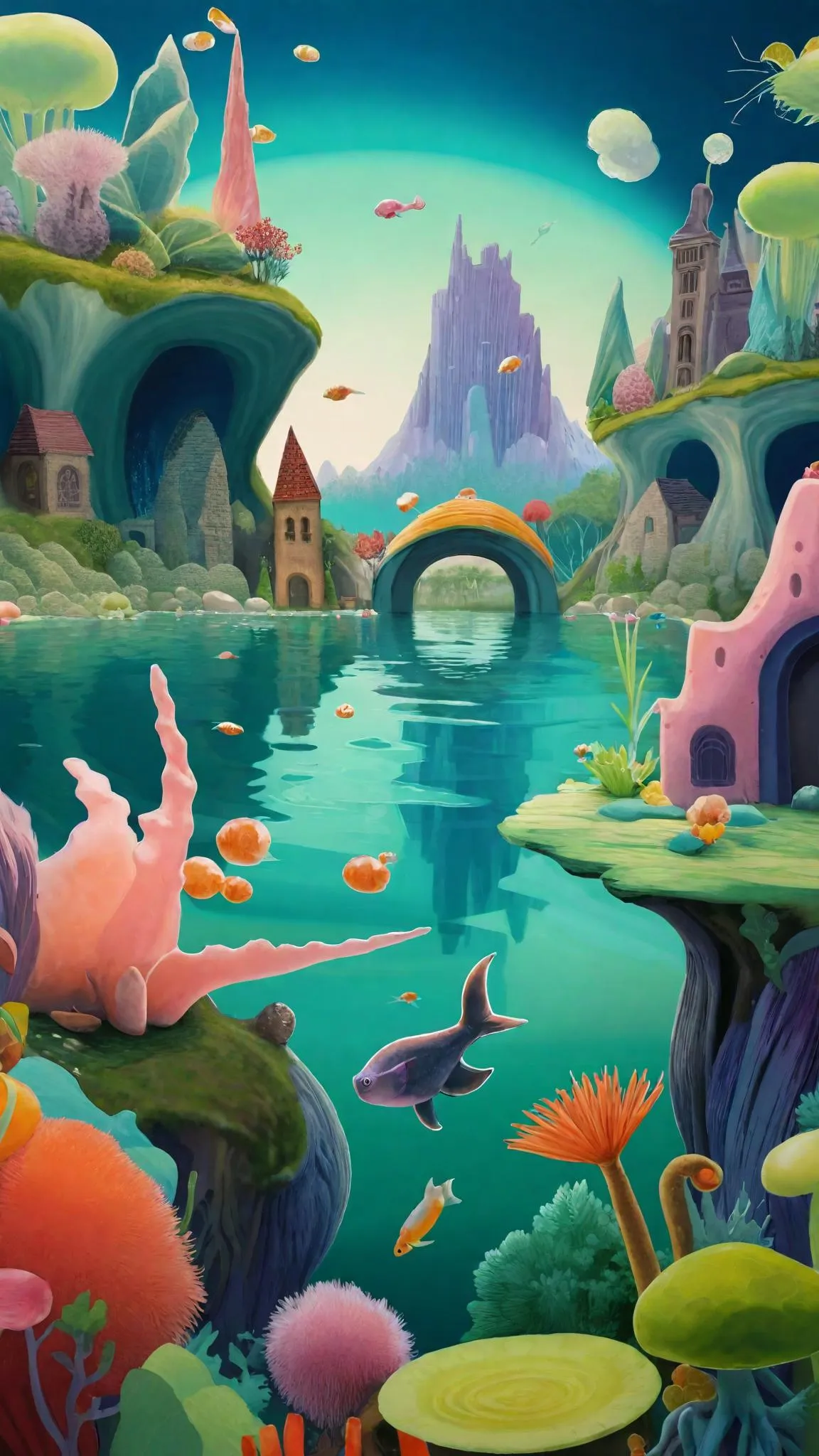 Discover AI-generated vibrant underwater worlds with Vivago.ai. Transform prompts into dreamlike Cretaceous lake cities, crystal-clear green-blue waters, and whimsical Eric Carle-inspired pink jelly creatures. Explore submerged realms blending natural rock formations, coral reefs, and aquatic life. Perfect for fantasy scenes, underworld adventures, or serene meadow-waterpark hybrids. Elevate creativity with AI-powered visual storytelling for immersive, professional-grade aquatic landscapes.