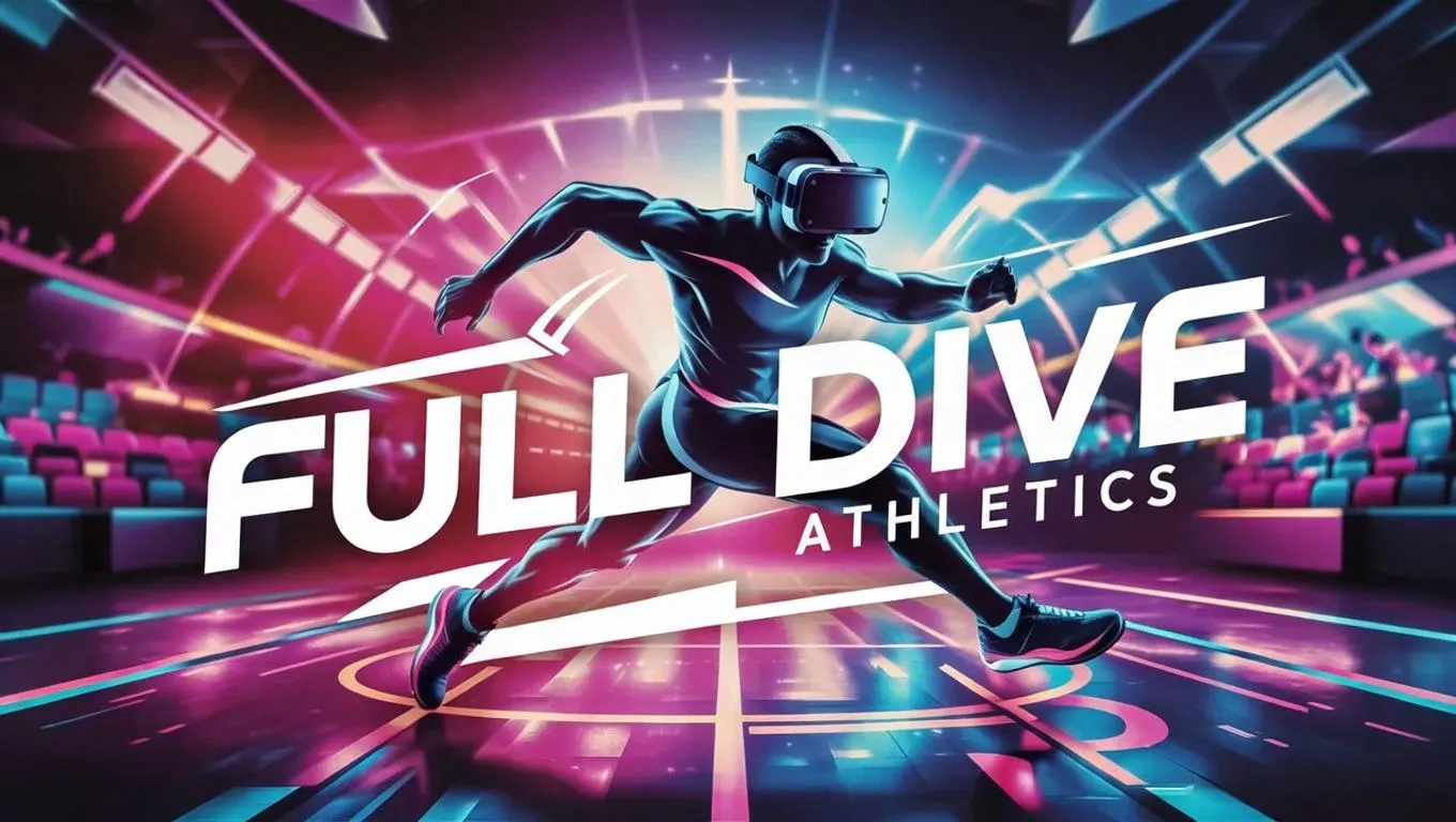 Design an AI-generated logo for Full Dive Athletics' sports VR simulator. Capture motion, tech, and immersive virtual reality in dynamic visuals. Elevate branding with futuristic gaming technology and fitness innovation.