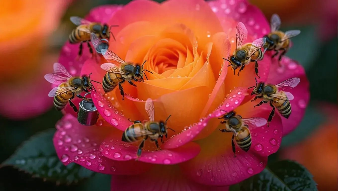 Discover AI-generated miniature bees in vibrant gardener outfits tending a giant rose garden. Watch as they water petals with tiny cans, smooth delicate textures, and communicate amidst dewy leaves. Vivgo.ai transforms prompts into dynamic, whimsical ecosystems with intricate details and playful pollination scenes. Create enchanting AI art where nature meets imagination.