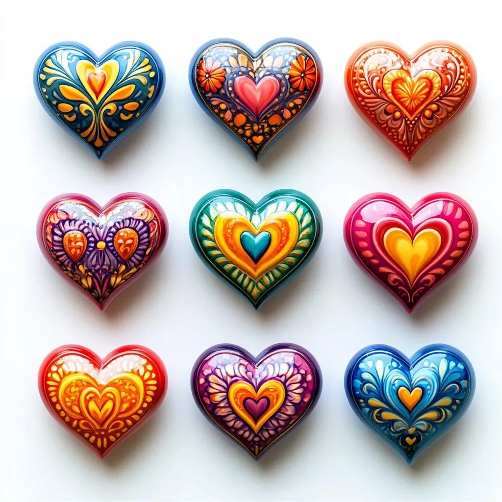 Generate vibrant AI clipart hearts in multiple colors and patterns with Vivago.ai. Featuring front, side, and rear views on a pristine white background, crafted in 8K resolution for ultra-high detail. Perfect for designers seeking versatile, professional-grade heart-themed graphics. Create custom clipart collections effortlessly using AI-powered tools.
