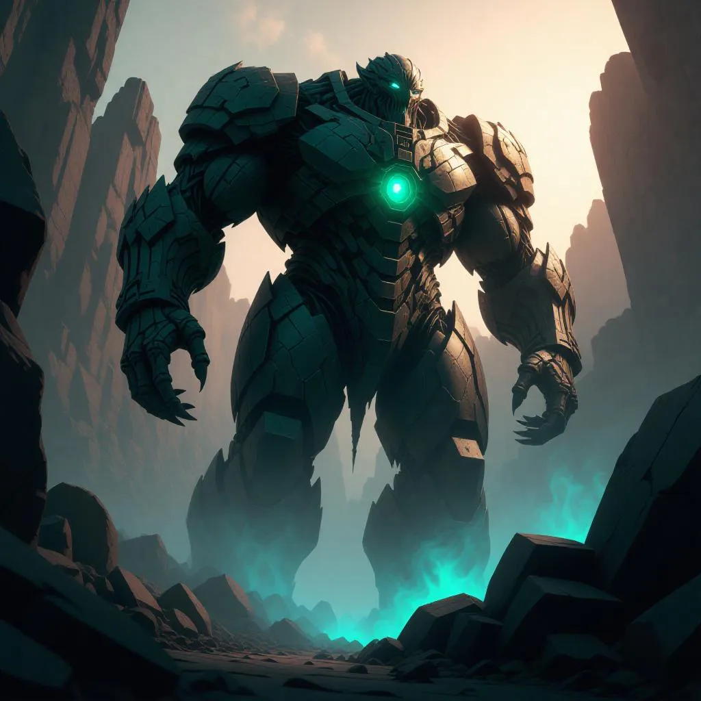 Generate an Awakened Titan in erosion texture art style with green-blue, red, and brown hues using Vivago.ai. Transform text prompts into weathered, dynamic visuals with AI-powered tools for professional-grade textures, vibrant color blending, and striking AI-generated mythical character art.
