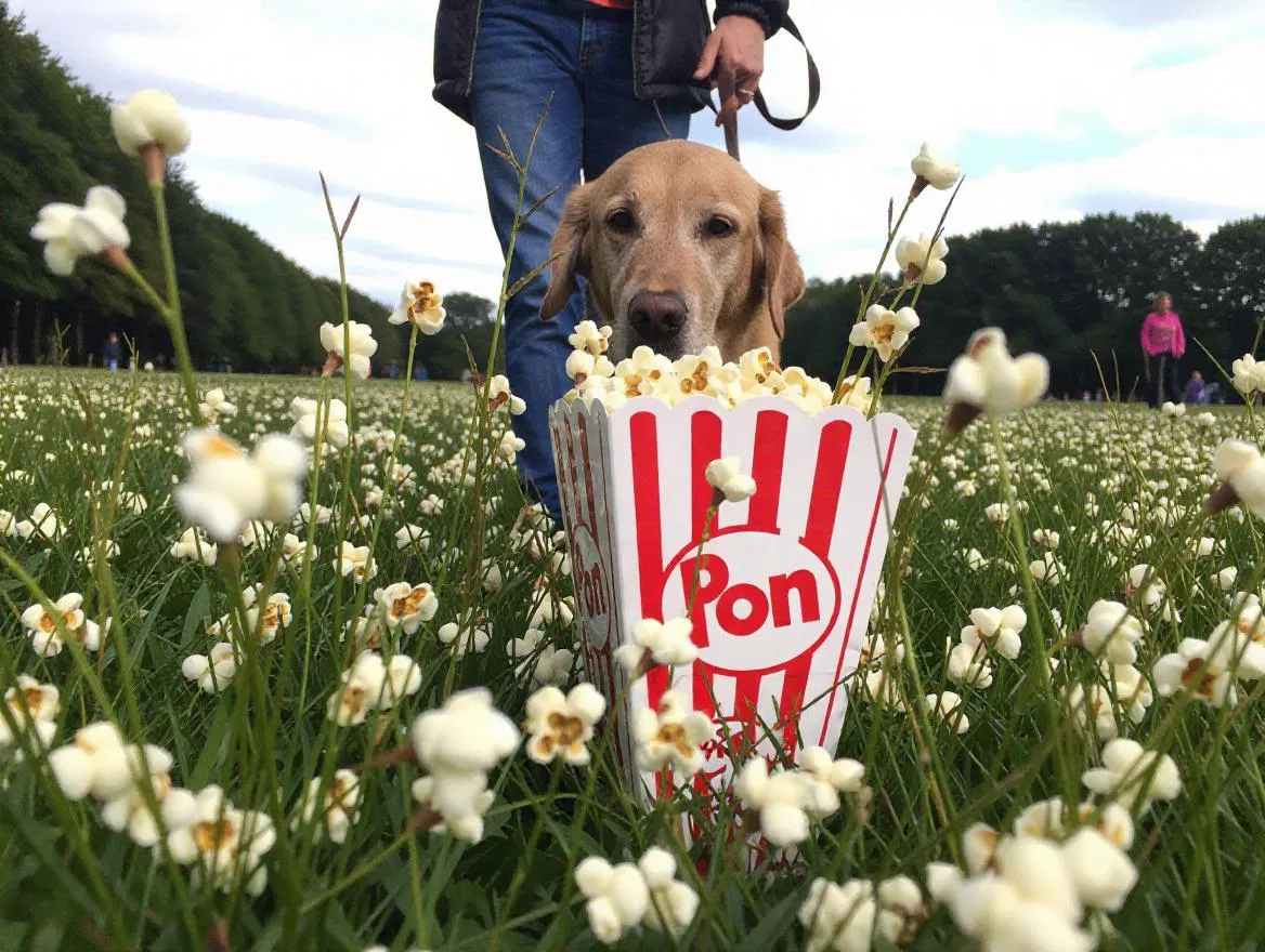 Generate a whimsical AI image of a dog walking with popcorn using vivago.ai. Easily turn quirky text prompts like 'A dog walking with popcorn' into dynamic, creative visuals with our powerful AI image generator. Explore fun themes and unique ideas effortlessly.