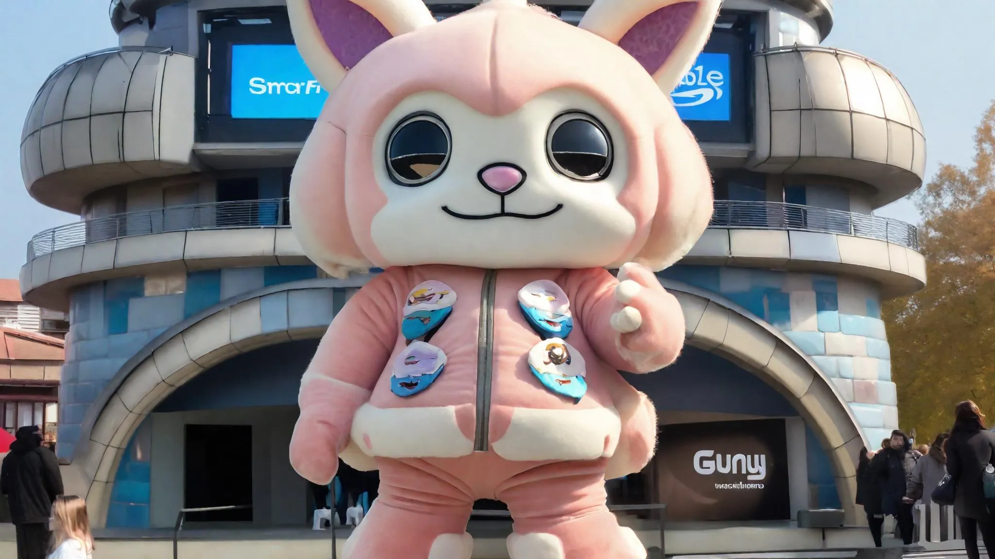 1 Human Girl Toddler In LinaBell Costume Live With LinaBell Mascot In Her Samsung Galaxy Smart Castle. Remember?. No Cartoons, Just Cameras With Character Fit In HD Widescreen Frames, No Comics, Just Giant Fresh Clean Giant Soft Refurbish Plush Mascot Costume With Giant Fresh Clean Soft Refurbish Plush Huge Mascot Head, Just Tidy, Just Giant Cuddly, Giant Huggable, Giant Soft