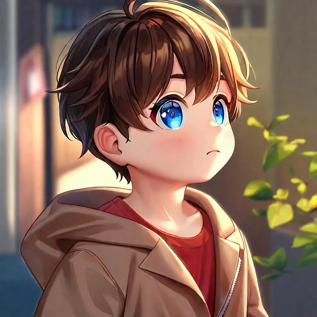 Generate a charming AI image of a 5-year-old boy with blue eyes and fair complexion, dressed in a red T-shirt, black pants, brown jacket, and boots. Perfect for children's content, family projects, or character design using Vivago.ai's creative tools.