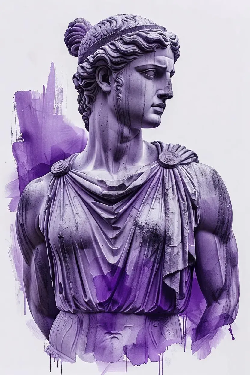 Transform text into AI-generated classical art with Vivago.ai. Craft a striking ancient Greek athlete statue in gray tones and black ink on white paper, enhanced by Violet Purple accents and a Matte Texture finish. Merge classical sculpture with contemporary design for professional, visually captivating results using advanced AI tools.