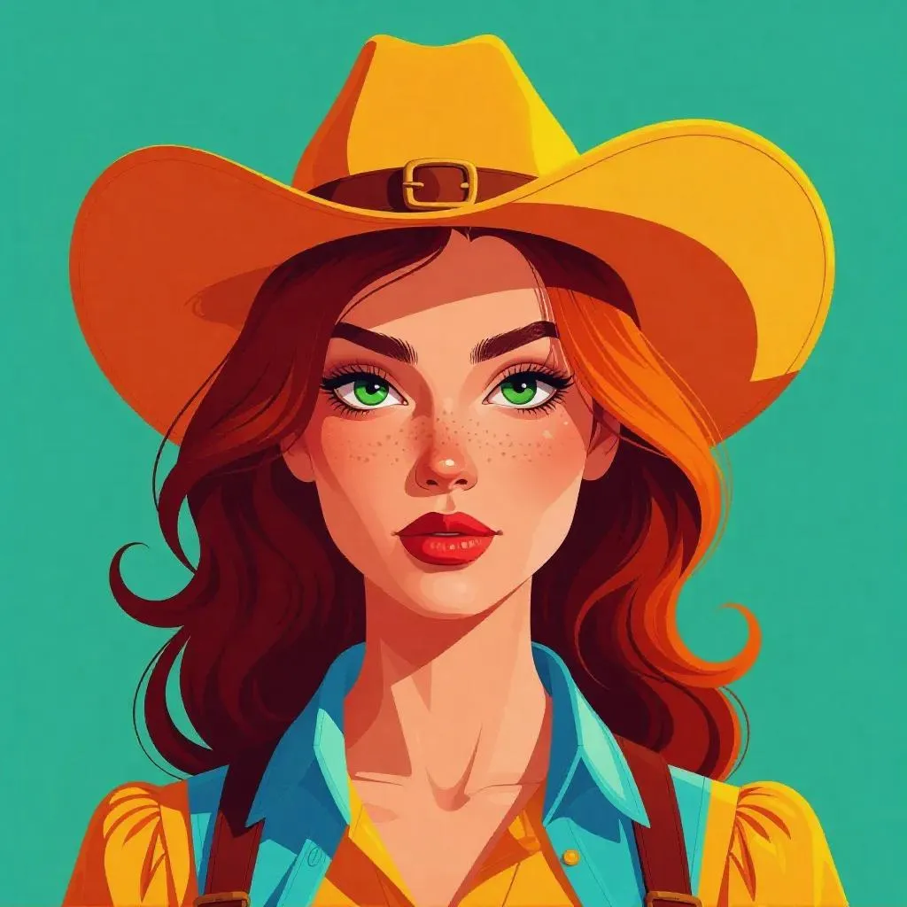 Generate a cartoon-style Calamity Jane apple-head character with bold orange-red, green, and blue hues using AI. Create vivid, playful illustrations with dynamic effects and curated editing tools for professional-grade, eye-catching cartoon art and whimsical designs.